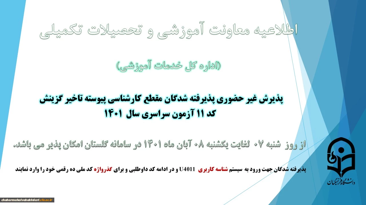 امتیاز دهید : آغاز پذیرش غیر حضوری از پذیرفته شدگان کد 11 آزمون سراسری سال 1401 2 شنبه 7 آبان 1401 ساعت 13:49
