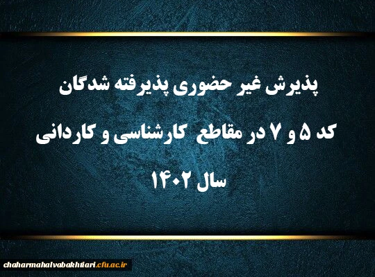پذیرش غیر حضوری پذیرفته شدگان کد ۵ و ۷ در مقاطع کارشناسی و کاردانی سال ۱۴۰۲ 2