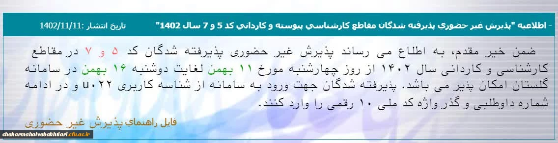 پذیرش غیر حضوری پذیرفته شدگان کد ۵ و ۷ در مقاطع  کارشناسی و کاردانی سال ۱۴۰۲ 3