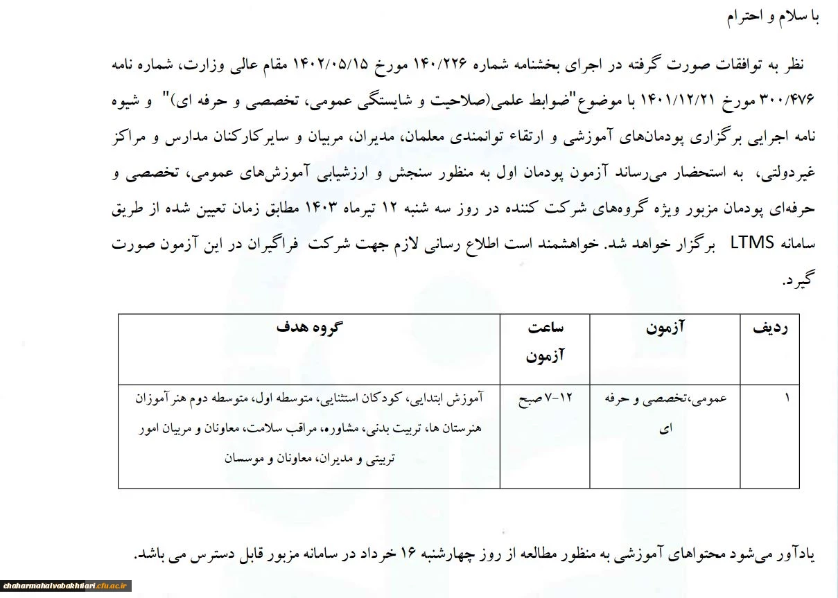اعلام زمان برگزاری آزمون پودمان اول کارکنان مدارس غیردولتی 3